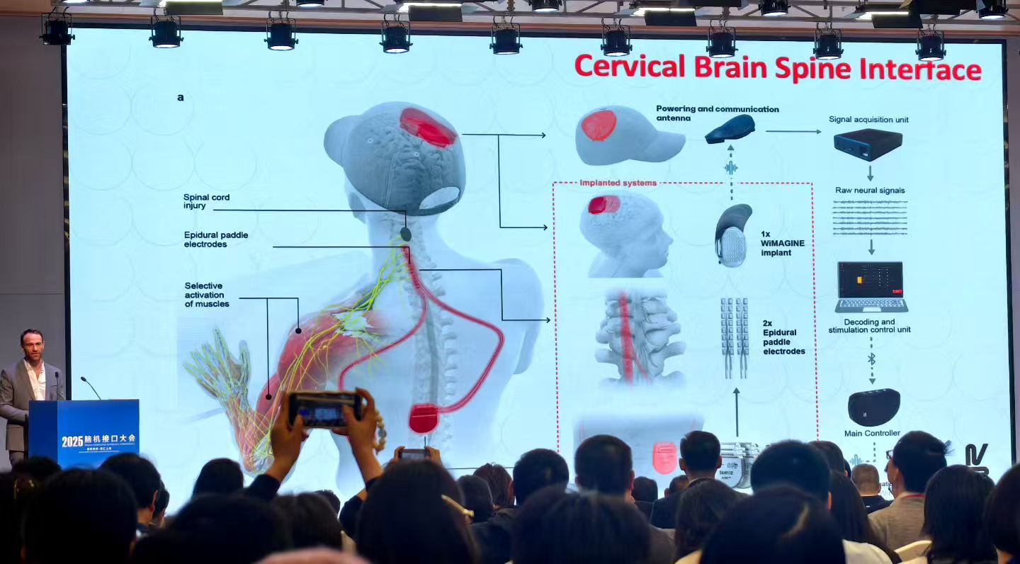 专家共话脑机接口未来主题演讲环节,复旦大学附属华山医院院长毛颖带来《华山医院脑机接口临床试验进展》的报告,为行业后续的临床研究提供了极具价值的参考。德国卡尔斯鲁厄技术研究所名誉教授、CorTec GmbH和Neudio LLC创始人Jörn Rickert以《双向脑机接口:技术和应用案例》为题,展现了双向脑机接口的技术魅力,为中外行业交流搭建了桥梁。临港实验室首席科学家洪波以《运动脑机接口的新认识》为题,聚焦微创脑机接口在运动脑机接口领域的前沿进展。瑞士洛桑大学助理教授Henri Lorach介绍了《脑控脊髓电刺激促进脊髓损伤后自主运动恢复》分享了脑脊髓接口最前沿进展与临床效果。